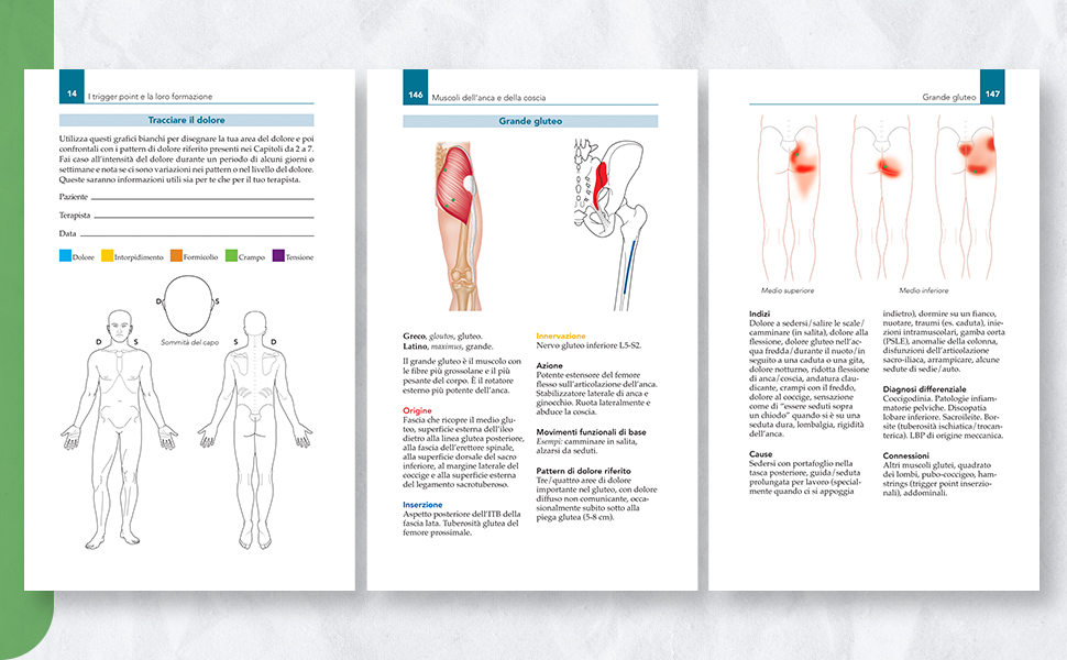 - Anatomia Muscolare e Pattern di Dolore. Guida intuitiva all'anatomia muscolare e ai pattern di dolore, arricchita da illustrazioni dettagliate per facilitare l'identificazione e il trattamento dei trigger point.